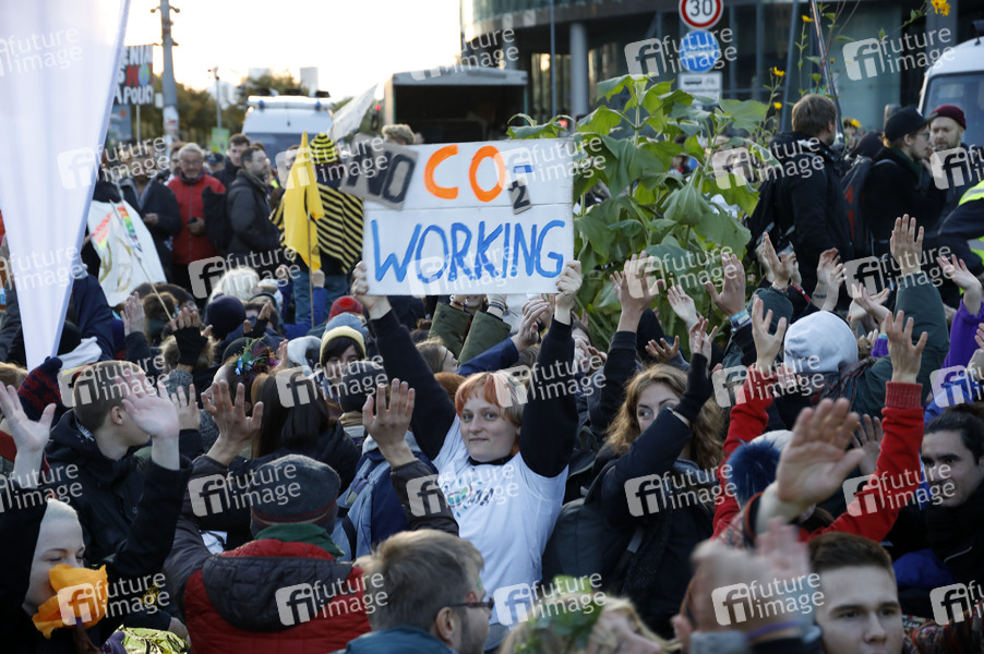 Demonstration, Demonstranten, Demo, Kundgebung, Protest, Aktion, Banner, Parolen, Politik, Umweltschutz, Klimawandel, Klimakrise, Blockade, weltweite soziale Bewegung