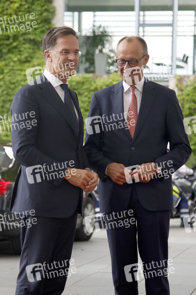 Mark Rutte und Friedrich Merz beim Empfang des NATO-Generalsekretärs zu einem gemeinsamen Gespräch mit anschließendem Pressestatement im Bundeskanzleramt. Berlin, 09.07.2025