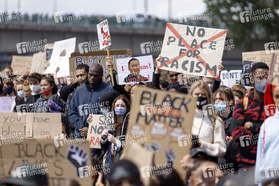 Teilnehmer der Anti-Rassismus-Demonstration von Black Lives Matter in der Deutzer Werft. Köln, 06.06.2020