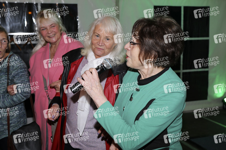 Brigitte Mentzel und Ingrid Raack bei der Show zur Einweihung des Achim-Mentzel-Weg im Festzelt. Cottbus, 23.10.2021