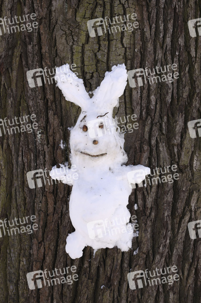 Schneehase an einem Baum, gesehen Winterspaziergang im Großen Tiergarten. Berlin, 31.01.2021