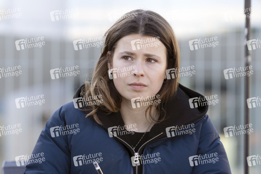 Luisa Neubauer bei der gemeinsamen Pressekonferenz von Fridays for Future, dem BUND und Greenpeace zu den geplanten Einschnitten bei der Energie- und Wärmewende vor dem Bundeskanzleramt. Berlin, 03.03.2026