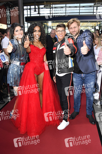 Joana Kesenci, Alicia-Awa Beissert, Davin Herbrüggen und Nick Ferretti bei der Ankunft zum Finale der 16. Staffel der RTL-Castingshow 'Deutschland sucht den Superstar / DSDS 2019' im MMC Coloneum. Köln, 27.04.2019