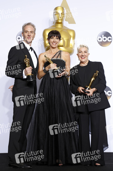Damian Martin, Elka Wardega und Lesley Vanderwalt im Presseraum der Oscar Verleihung 2016 / 88th Academy Awards im Loews Hollywood Hotel. Los Angeles, 28.02.2016