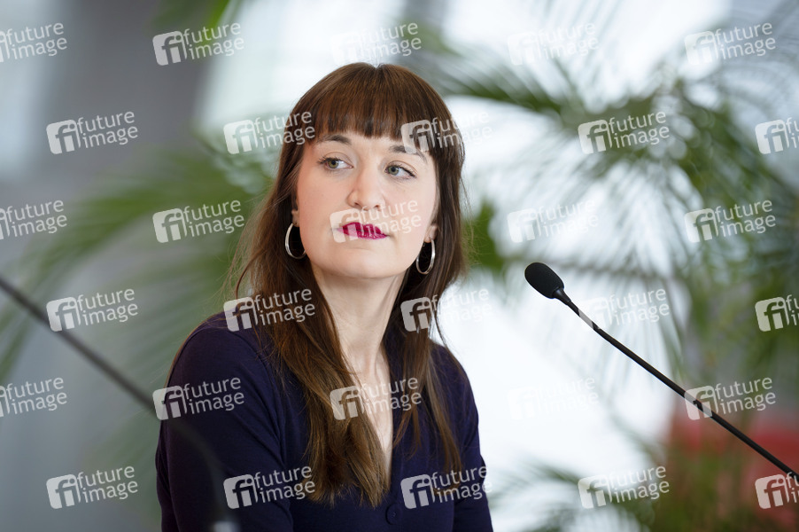 Politik, Statement, Pressekonferenz, PK, Reichstag, Deutscher Bundestag, Demokratie, Parlament, Parlamentsgebäude, Volksvertreter, MdB, Mitglied des Bundestages, Abgeordnete, Politikerin, Vorsitzende der Fraktion Die Linke