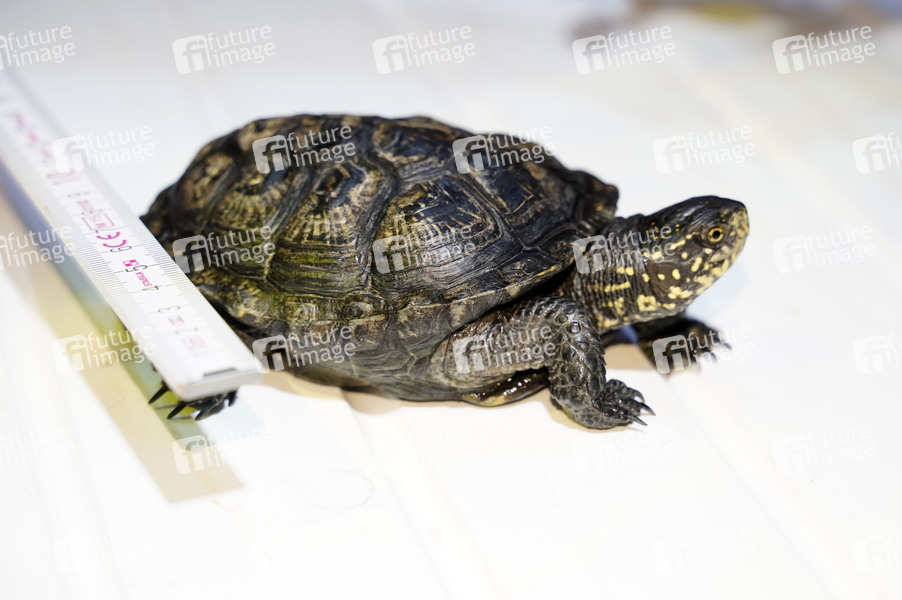 Sea Life, Schildkröten, Schildkröte. Putzen, Zahnbürste, Europäische Sumpfschildkröte, Extrapflege, Großreinigung, Wathose, Fensterwischer, Zollstock