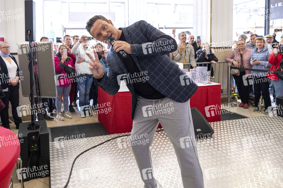 Stefan Mross bei einem Kurzauftritt mit Autogrammstunde zum Album 'Lichtblicke' im Einkaufszentrum Anger 1. Erfurt, 17.09.2022