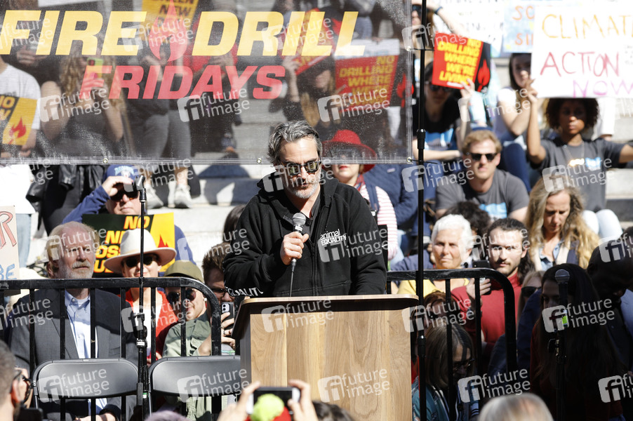 Joaquin Phoenix bei der Fire Drill Fridays Kundgebung gegen den Klimanotfall vor dem Rathaus. Los Angeles, 07.02.2020