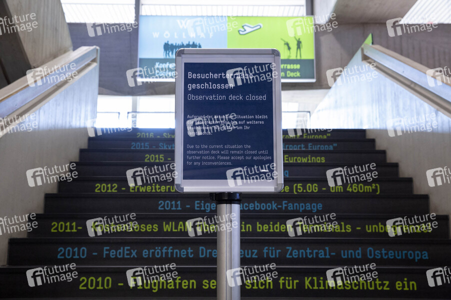 Geschlossene Besucherterasse - Nahezu vollständiges Erliegen des Personenflugverkehrs im Zusammenhang mit der Corona-Krise am Flughafen Köln/Bonn. Köln; 07.04.2020