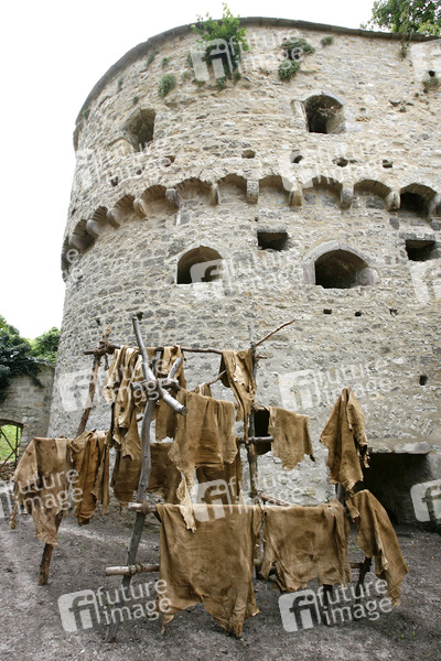 die ersten Bauten der Burg entstanden im 10. Jahrhundert, Erweiterungen bis ins 17. Jahrhundert, Filmkulisse, Leder, Turm