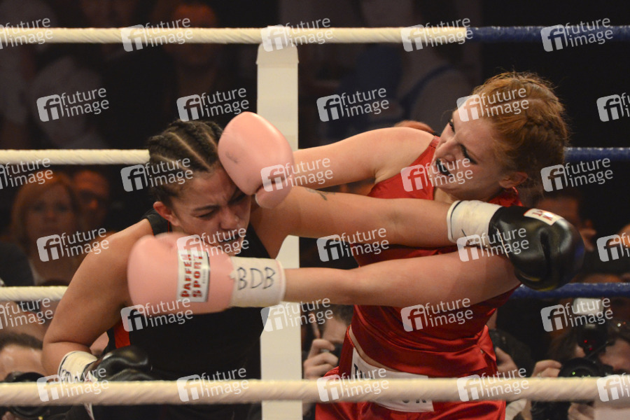 Marlene 'Jazzy' Tackenberg vs. Georgina Fleur bei der Fernsehshow 'Das große Sat.1 Promiboxen 2013' im Castello. Düsseldorf, 08.03.2013