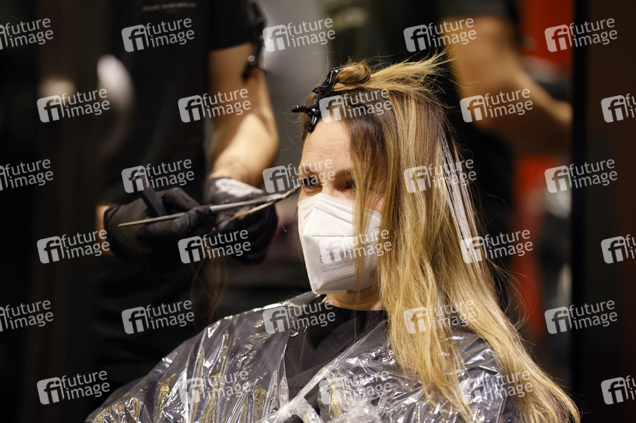 Frisör, Friseursalon, Frisur, Friseur, Friseure, Corona-Maßnahmen, Coronakrise, Corona-Krise, Schutzkleidung, Spritzschutz, Frisör, Salon, Haare schneiden, Haarschnitt, Fönen, Waschen, Legen, Corona, Virus, Sars-CoV-2, Covid-19, Coronavirus, Corona-Virus, Coronaviren, Corona-Viren, Pandemie, Epidemie, RKI-Zahlen, Neuansteckungen, Corona-Lockerungen, zurück zur Normalität, Corona-Schutz, Exit-Strategie, Friseurbesuch, Ausnahmesituation, Atemschutz, Mundschutz, Mundschutzpflicht, Maskenpflicht, Mundschutz-Pflicht, Mund-Nase-Schutz, Mund-Nasen-Schutz, MNS, Corona-Regeln