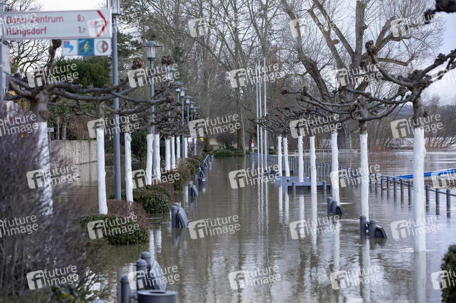Das erste Jahreshochwasser am Rhein nahe des Pegelhöchstandes. Königswinter, 04.02.2021