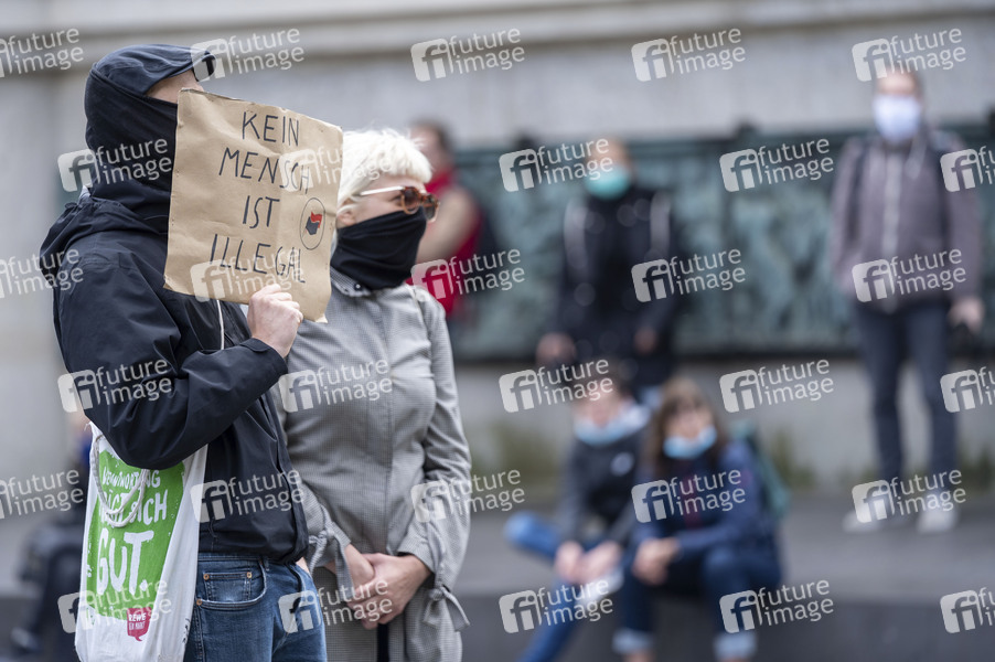 Demo, Demonstranten, Demonstration, Demonstrationszug, Erster Mai, Feiertag, Maidemo, Mai-Demo, Politik, Protestplakat, Tag der Arbeit, Corona, Sars-CoV-2, Covid-19, Coronavirus, Coronaviren, Corona-Virus, Coronakrise, Corona-Krise, Corona-Pandemie, Coronamaßnahmen, Corona-Schutz, flatten the curve, Ausnahmesituation, Atemschutz, Atemschutzmaske, Virenschutz, Schutzmaske, Schutzmasken, Atemschutzmasken, Maske, Masken, Mundschutz, Mund-Schutz, Mundschutzpflicht, Maskenpflicht, Mundschutz-Pflicht, Mund-Nase-Schutz, Mund-Nasen-Schutz, MNS, Vermummung, Kontaktverbot, Versammlungsverbot, Mindestabstand, Social Distancing, Kontakt verboten, Ausgangsbeschränkung, Abstand, Abstandhalten, Abstandsregel, Abstandsregeln, Allgemeinverfügung
