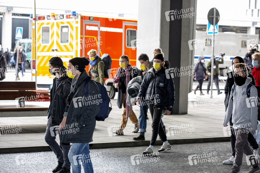 Protestaktionen von Mitgliedern des Bündnisses 'Am Boden bleiben' bei der Eröffnung des Flughafens Berlin-Brandenburg (BER). Schönefeld, 31.10.2020