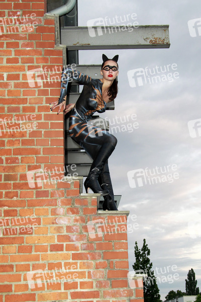 GEEK ART - Bodypainting meets SciFi, Fantasy and more: Catwoman Photoshooting mit Model Elena auf dem Hefehof-Gelände in Hameln - Ein Projekt des Fotografen Tschiponnique Skupin, Bodypainting: Jörg Düsterwald