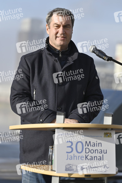 Markus Söder bei der Jubiläumsveranstaltung '30 Jahre Main-Donau-Kanal' am Bamberger Hafen. Bamberg, 25.11.2022