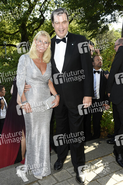 Markus Söder mit Ehefrau Karin Baumüller bei der Eröffnung der Richard-Wagner-Festspiele 2019 mit der Premiere 'Tannhäuser' im Bayreuther Festspielhaus. Bayreuth, 25.07.2019