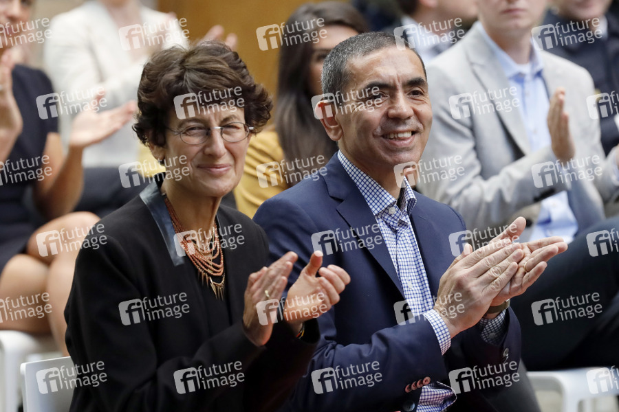 Özlem Türeci und Ugur Sahin, die Gründer des Biotechnologie-Unternehmens Biontech, bei der Verleihung der Ehrendoktorwürde der Medizinischen Fakultät der Uni Köln und der Eintragung ins Goldene Buch der Stadt Köln. Köln, 17.09.2021