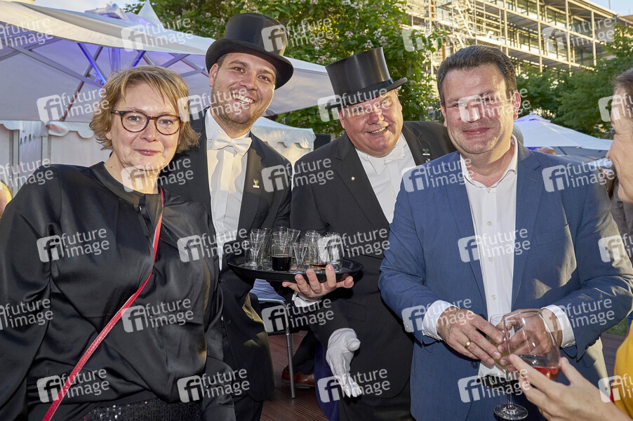 Daniela Behrens, Alexander Hildebrand, Rolf Franke und Hubertus Heil beim Sommerfest der Niedersächsischen Landesregierung 2024 in der Vertretung des Landes Niedersachsen beim Bund. Berlin, 24.06.2024