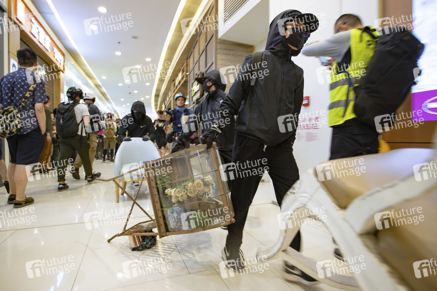 Demonstranten blockieren das Citywalk-Einkaufszentrum, um die Polizei daran zu hindern einzudringen