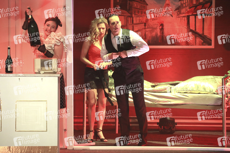 Rebecca Lara Müller, Stefanie Hertel und Stuart Sumner bei der Musicalpremiere 'Ganz Paris träumt von der Liebe' im Kulturhaus. Gotha, 12.04.2024