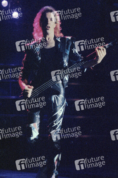 Francis Buchholz von den Scorpions live bei einem Konzert der 'Savage Amusement World Tour 88-90' im Hammersmith Odeon. London, 20.02.1989