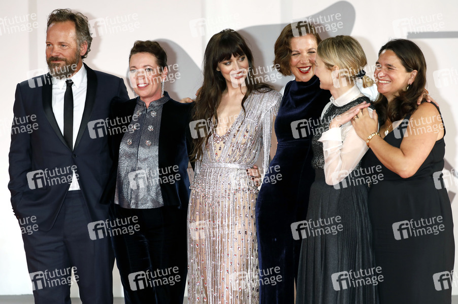 Peter Sarsgaard, Olivia Colman, Dakota Johnson, Maggie Gyllenhaal, Alba Rohrwacher und Talia Kleinhendler bei der Premiere des Kinofilms 'The Lost Daughter' auf der Biennale di Venezia 2021 / 78. Internationale Filmfestspiele von Venedig im Palazzo del Cinema. Venedig, 03.09.2021