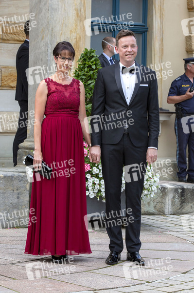 Tobias Hans mit Ehefrau Tanja Hans bei der Eröffnung der Richard-Wagner-Festspiele 2021 mit der Premiere von Richard Wagners 'Der fliegende Holländer' im Bayreuther Festspielhaus. Bayreuth, 25.07.2021