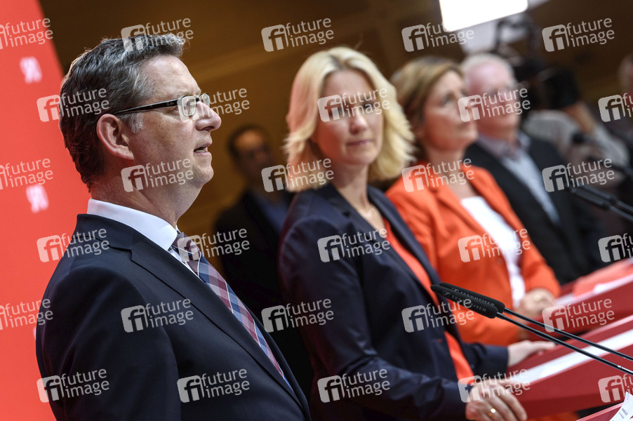 Thorsten Schäfer-Gümbel Manuela Schwesig und Malu Dreyer bei der Pressekonferenz der SPD zur Nachfolge der zurückgetretenen Parteivorsitzenden im Willy-Brandt-Haus. Berlin, 03.06.2019