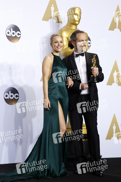 Rachel McAdams und Emmanuel Lubezki (Beste Kamera bei 'The Revenant - Der Rückkehrer') im Presseraum der Oscar Verleihung 2016 / 88th Academy Awards im Loews Hollywood Hotel. Los Angeles, 28.02.2016