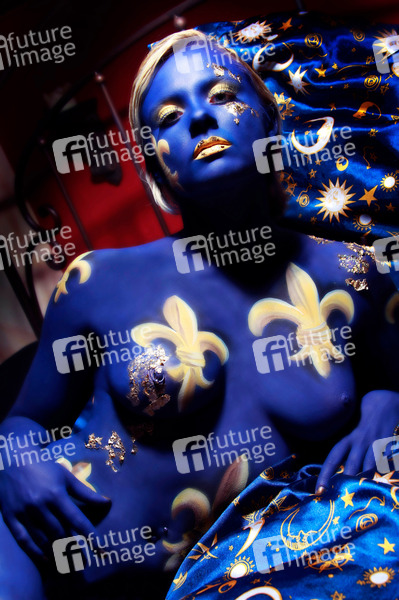 Duesterwald, Bodypainting, Erotik, Frau, Mädchen, nackt, drinnen, weiblich, Körperkunst, Kunst, Malerei, Bett, Schlafzimmer, erotic, woman, girl, nude, indoor, female, body art, body painting, fleur de lis, bed, bedroom