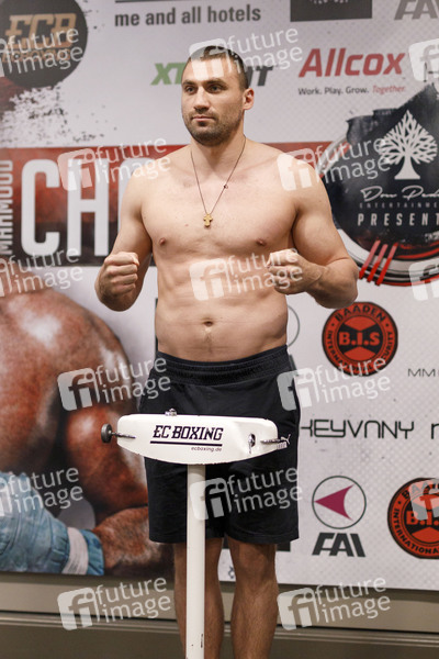 Victor Faust (UKR) beim Wiegen vor dem Boxen-Event ECB Fightnight im Lindner Hotel City Plaza. Köln, 14.05.2021