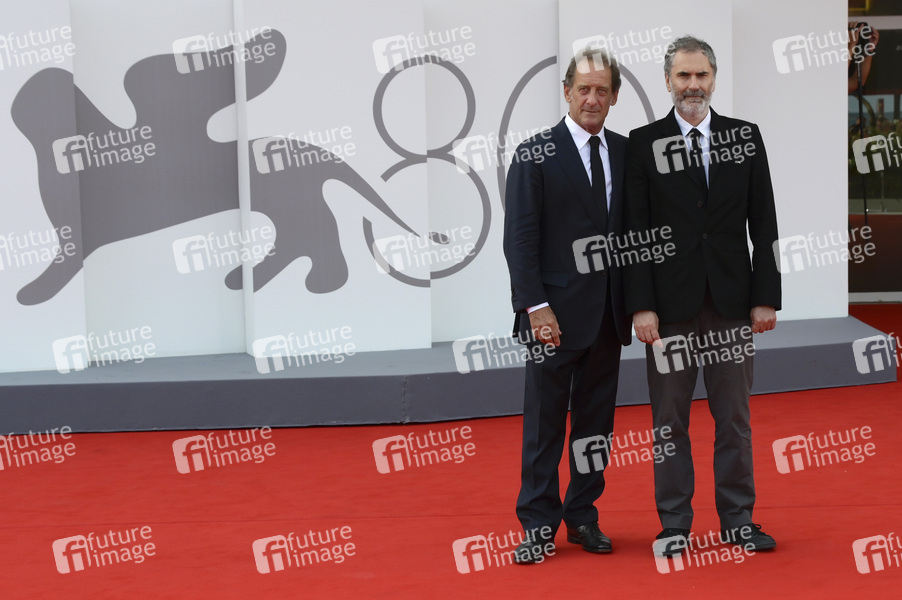 Vincent Lindon und Xavier Giannoli bei der Premiere der Miniserie 'D'argent et de sang / Of Money and Blood' auf der Biennale di Venezia 2023 / 80. Internationale Filmfestspiele von Venedig im Palazzo del Cinema. Venedig, 31.08.2023
