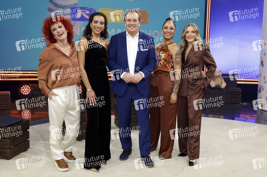 Lucy Diakovska, Nadja Benaissa, Wolfram Kons, Jessica Wahls und Sandy Mölling von den No Angels beim 30. RTL-Spendenmarathon 2025 im Studio 8 der EMG Studios. Hürth, 21.11.2025