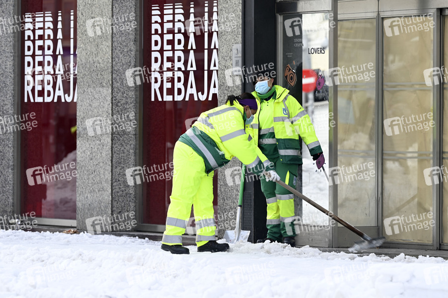 Die Region Madrid nach dem Sturmtief Filomena, das in weiten Teilen Spaniens mit starken Schneefällen für Chaos sorgte. Starker Schneefall legte das öffentliche Leben nahezu lahm. Seit 50 Jahren hatte es nicht so geschneit. Madrid, 10.01.2021