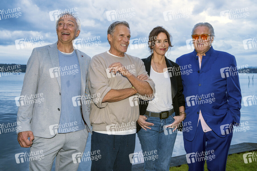 Matthias Helwig, Christian Tramitz, Katharina Müller-Elmau und Michael Brandner bei der Premiere von zwei neuen Folgen der ARD-Vorabendserie 'Hubert ohne Staller' auf dem Open Air Starnberg 2025 im Open Air Kino im Seebad. Starnberg, 05.08.2025