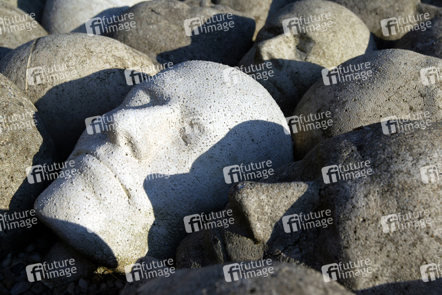 Kunstwerk nach dem Kopf des Künstlers 1980-1994, Feld mit weißen Köpfen aus Stein