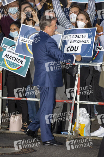 Armin Laschet beim 'Triell - Dreikampf ums Kanzleramt' von ARD und ZDF mit den Kanzlerkandidaten im Studio Berlin-Adlershof. Berlin, 12.09.2021