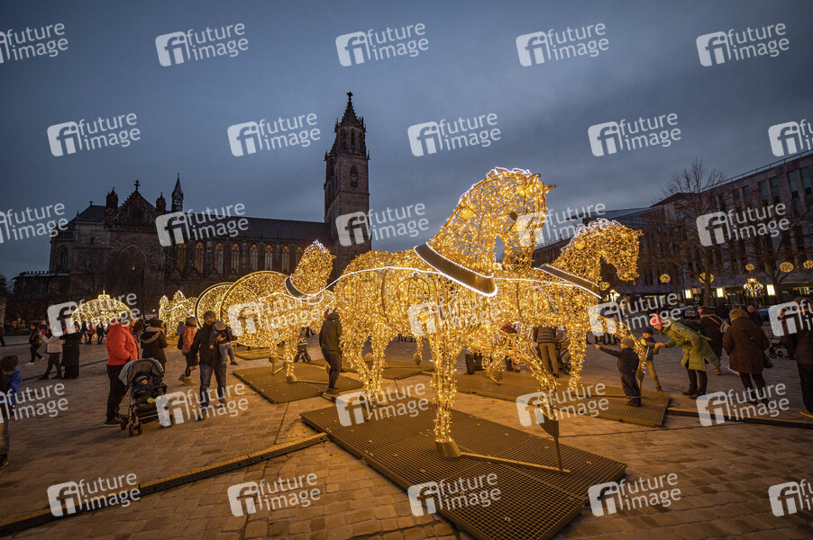 Lichterwelt auf dem Domplatz - Die Licherwelt Magdeburg mit der umfangreichste Weihnachts- und Winterbeleuchtung in Mitteldeutschland verteilt über die ganze Stadt. Magdeburg, 27.11.2022