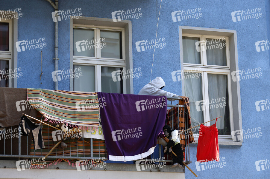 Im teilbesetzten Haus in der Rigaer Straße 94 sollte am Donnerstag der Brandschutz überprüft werden. Nachdem die Bewohner sich zunächst weigerten, die Tür zu öffnen, verschaffte sich die Polizei gewaltsam Zutritt und wurde mit Farbe beworfen. (Quelle: rbb online) Berlin, 17.06.2021