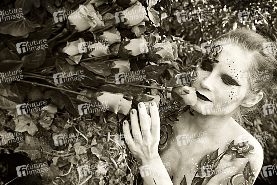 Bodypainting, Erotik, Frau, Mädchen, nackt, draußen, weiblich, Körperkunst, Kunst, Malerei, schwanger, Bauch, Garten, erotic, woman, girl, nude, outdoor, female, body art, body painting, pregnant, garden