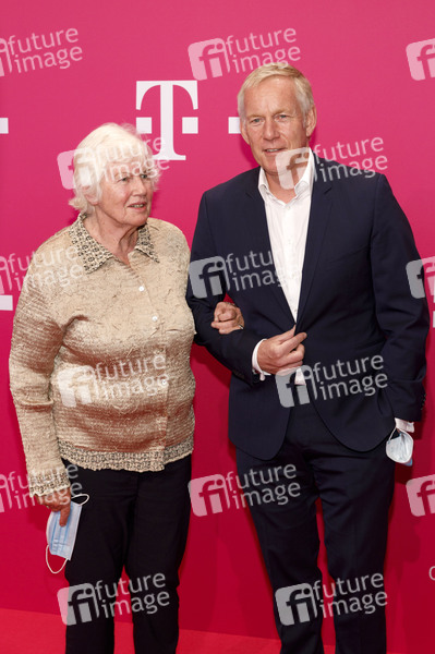 Johannes B. Kerner mit Mutter Magda bei der Uraufführung der mittels Künstlicher Intelligenz vollendeten 10. Sinfonie von Ludwig van Beethoven nach Notizen des Komponisten im Telekom Forum. Bonn, 09.10.2021
