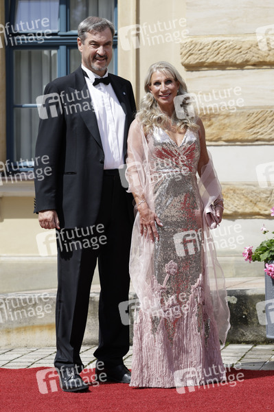 Markus Söder mit Ehefrau Karin Baumüller-Söder bei der Eröffnung der 113. Richard-Wagner-Festspiele 2025 mit der Neuinszenierung von 'Die Meistersinger von Nürnberg' im Bayreuther Festspielhaus. Bayreuth, 25.07.2025