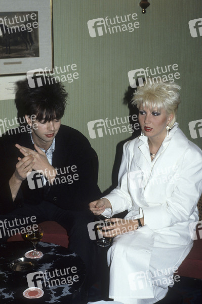 Ian McCulloch von Echo & the Bunnymen mit Ehefrau Lorraine Fox vor bei einem Konzert in der St. George's Hall. Liverpool, 12.05.1984