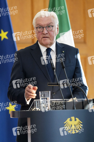 Frank-Walter Steinmeier beim Empfang des italienischen Staatspräsidenten mit militärischen Ehren im Schloss Bellevue. Berlin, 27.09.2024