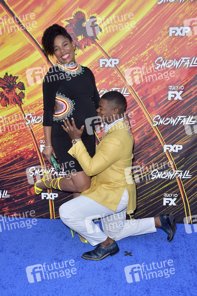 Angela Lewis und J. Mallory McCree bei der Premiere der 3. Staffel der FX TV-Serie 'Snowfall' im Bovard Auditorium der USC. Los Angeles, 08.07.2019