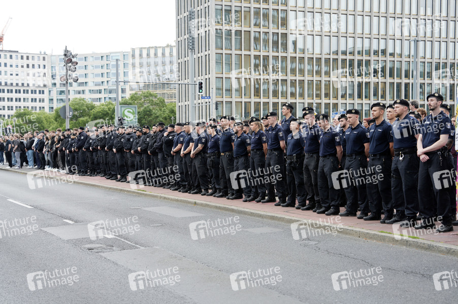 Polizisten in Uniform beim Schweigemarsch für den ermordeten Mannheimer Polizisten Rouven L. vom Potsdamer Platz zur Landesvertretung Baden-Württemberg. Berlin, 07.06.2024