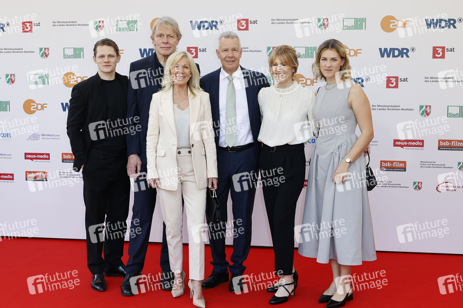 Max von der Groeben, Alexander von der Groeben, Ulrike von der Groeben, Peter Kloeppel, Carol Kloeppel und Geena Kloeppel bei der 61. Verleihung des Grimme Preises 2025 im Theater Marl. Marl, 04.04.2025