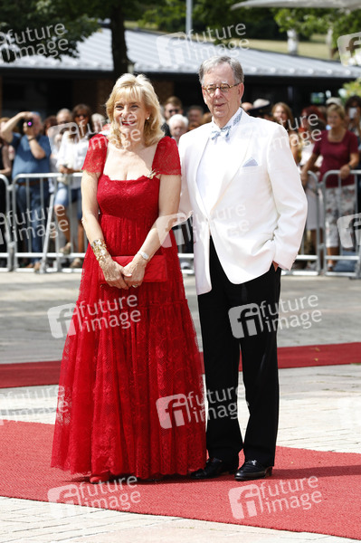 Susanne Porsche mit Freund Werner Ebke bei der Eröffnung der 112. Richard-Wagner-Festspiele 2024 mit der Neuinszenierung von 'Tristan und Isolde' im Bayreuther Festspielhaus. Bayreuth, 25.07.2024
